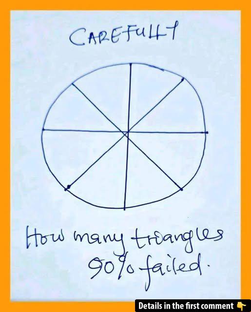 Think you’ve got sharp eyes? Here’s a puzzle that tricks 90% of solvers: a hand-drawn circle sliced into wedges, plus the words “CAREFULLY” and “How many triangles 90% failed.” It seems simple, but the real triangles aren’t all in the circular diagram. Can you spot them? Don’t rush—small details hide big surprises. Read on for a step-by-step breakdown that reveals every triangle in the drawing and the text. See if you beat the odds and join the 10% who get it right!